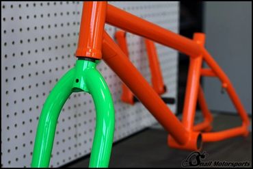 Refresh your trusty frame with a new powder coat job! We can refinish your steel or alloy frame and breath new life into an old friend or help you finish a wild custom build, the color and texture options are endless.